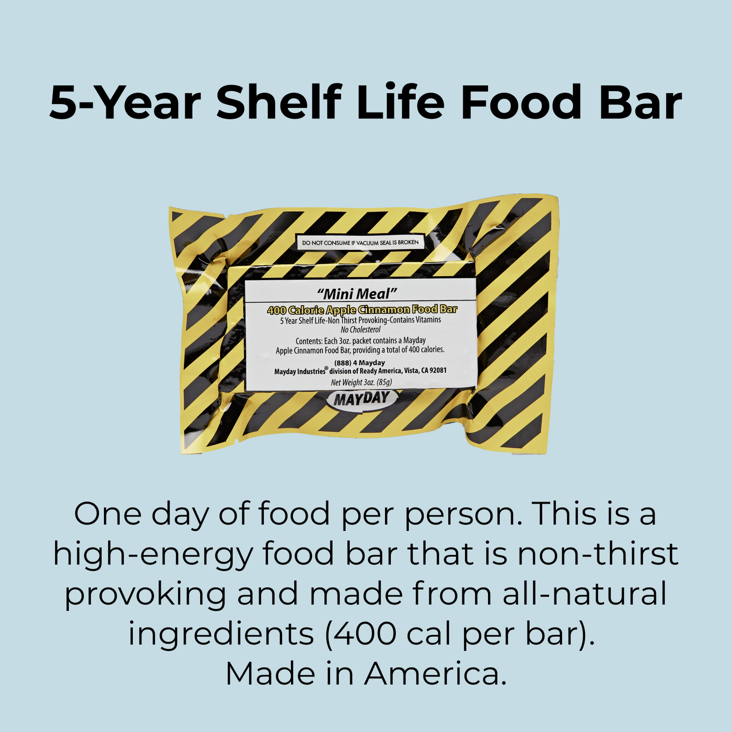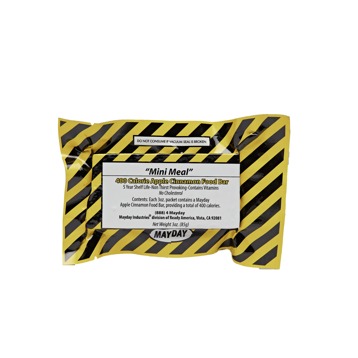 Mayday Industries is one of the leaders in emergency food, water, and other preparation supplies. Emergency food pouches come individually packed with a 400-calorie bar per pack. Apple cinnamon flavor with a 5-year shelf life and is "non-thirst provoking". So you won't dry your mouth out after eating one of these bars